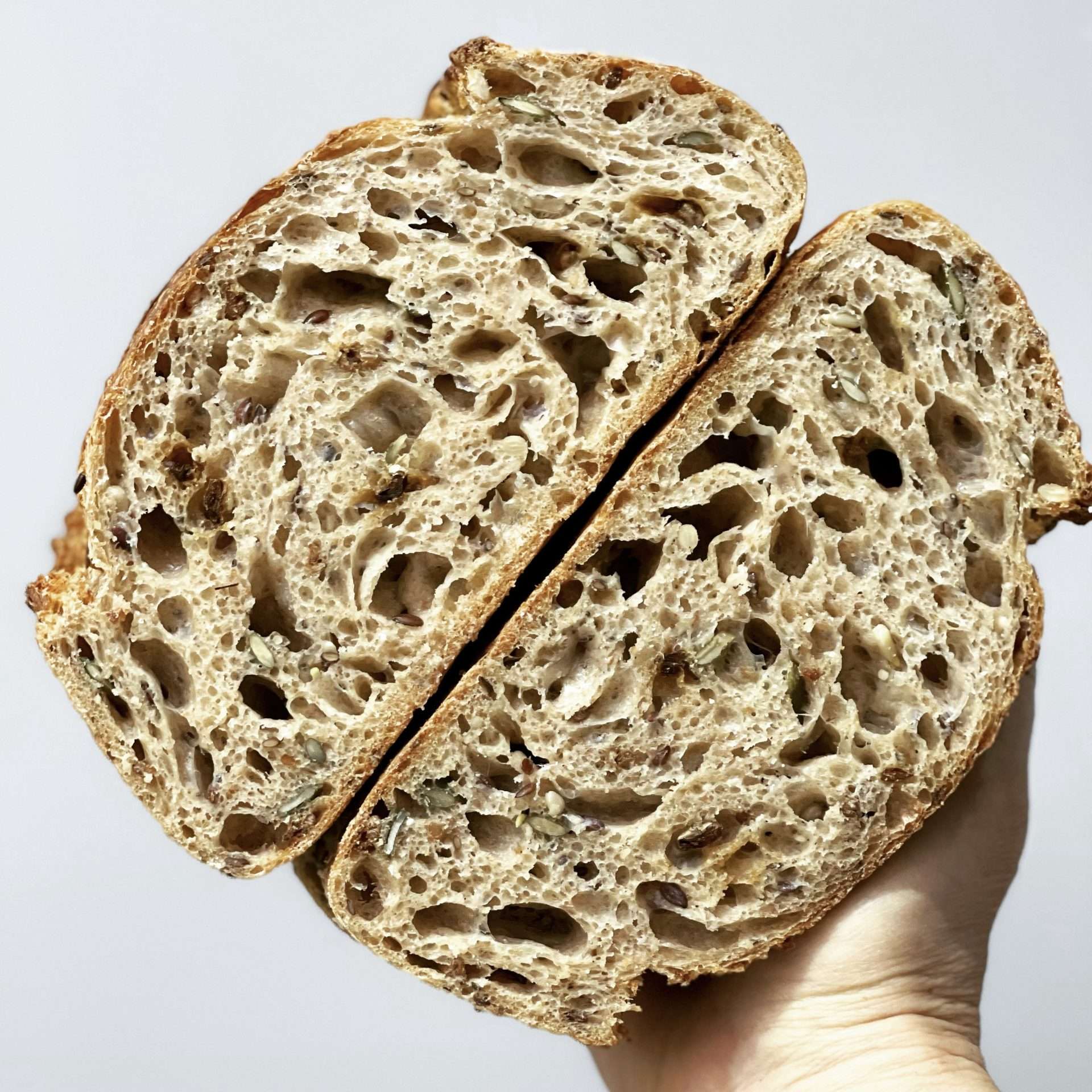 Without any artificial raising agents, processing aids, artificial additives or preservatives, sourdough utilises wild yeasts and beneficial bacteria from the atmosphere to ferment the dough. Good for gut health, the long slow fermentation process begins to break down the starches even before it reaches your stomach. That means it’s easier with less work on your digestive system and nutrients are more bioavailable. During the long preparation time much of the gluten (which is a protein) is also broken down into amino acids before you consume it. That is why many people with gluten intolerances are absolutely fine when they eat real, properly fermented sourdough. It also has a lower glycemic index than other breads, and won’t cause your blood sugar to rise so drastically upon eating it.