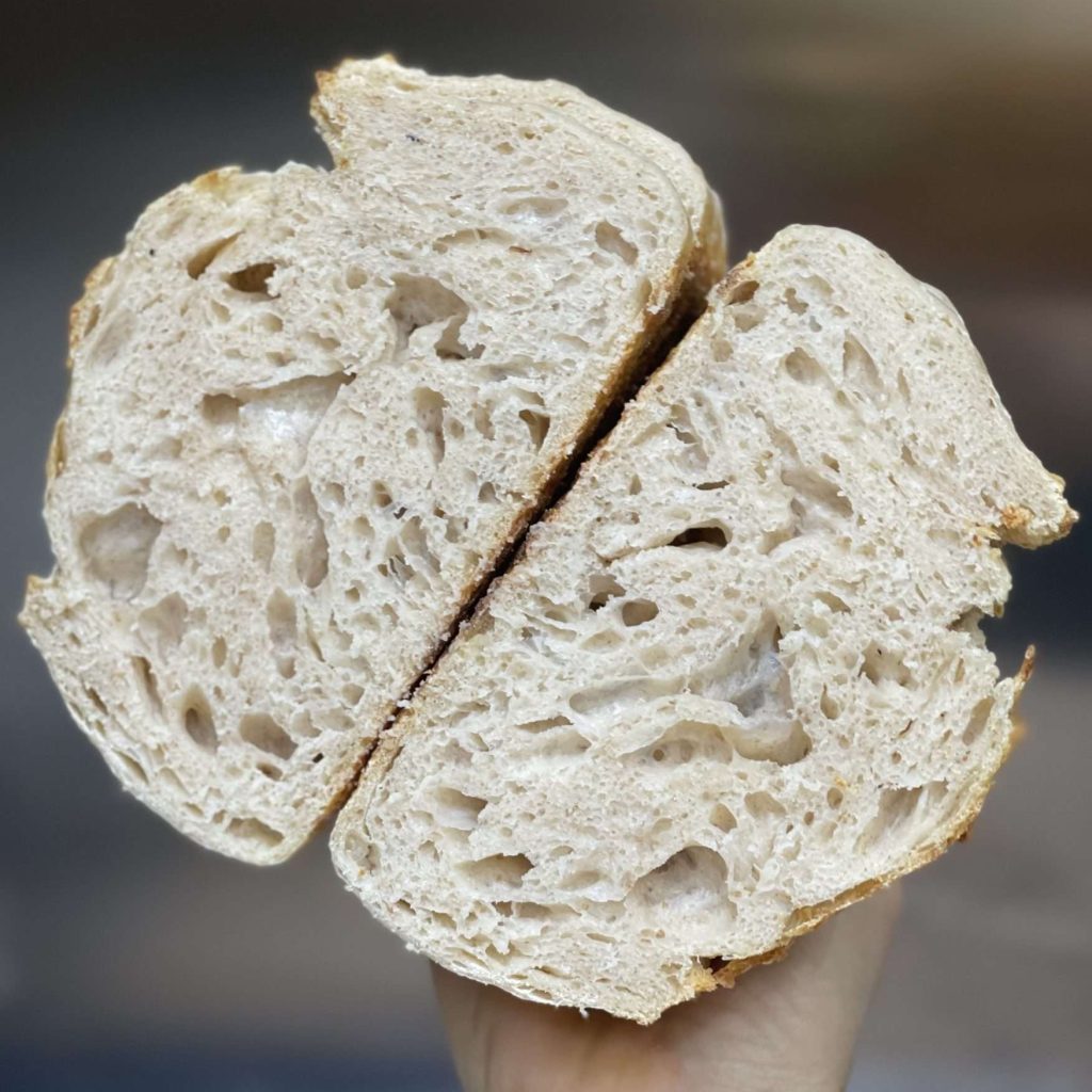 Naturally leavened with a whole spelt sourdough starter for over 24 hours and stone baked. Spelt is an ancient grain that has been traced back to Roman times. It has a distinctive rich, nutty and sweet flavour. This loaf is made with just 100% pure organic spelt flour, filtered water and sea salt. Soft, airy and light crumb with a crunchy crust. This loaf comes with the option of being sliced and in a brown paper bag. It freezes well or will keep fresh for three to four days in a linen bag, sealed container or wrap.