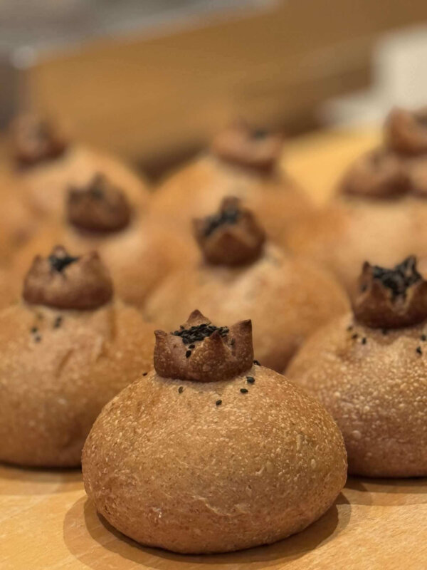 Made using only natural ingredients and organic flours, these pomegranate shaped rolls are a special for the Jewish New Year, RoshHashana. Traditionally, families serve the fruit, but here is a fun sourdough version, adding a bit of artful flair and colour to the festive table.