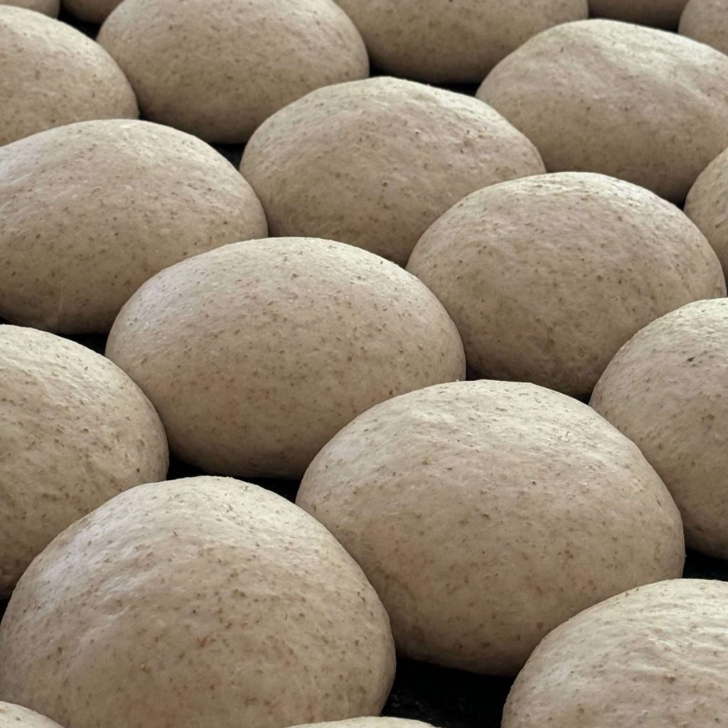 Fully fermented for over 36 hours and made with organic pizza flour, wholegrain sourdough starter, filtered water, extra virgin olive oil and sea salt. Box contains 2 dough balls, each weighing 400g. All ready for you to shape, add your favourite toppings and bake at home. Click on the link below for detailed preparation details.