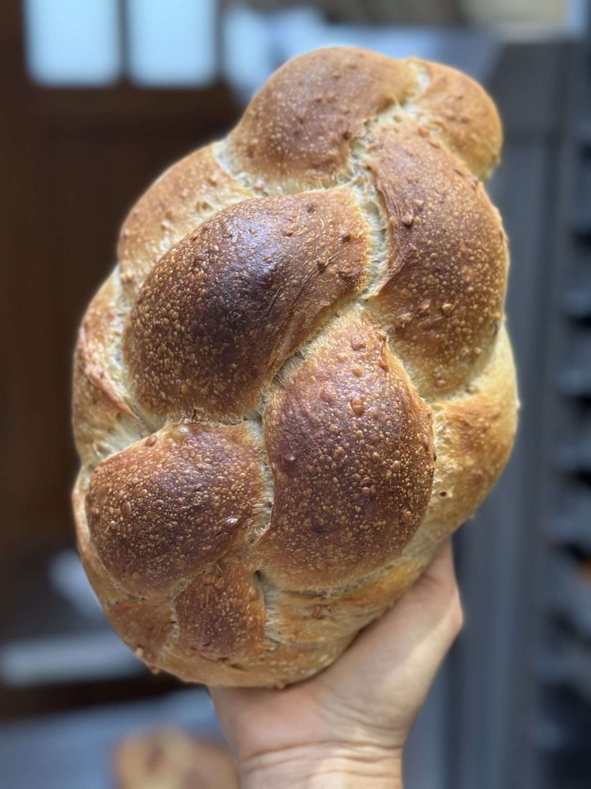 Artfully braided with six strands, these sourdough challahs are wholesome and dairy free. Made with all natural ingredients and organic flour, the very subtly sweetened enriched dough is fully and slowly fermented for over 36 hours. They are all hand crafted and a true labour of love. With an airy crumb, pillowy soft texture, a deep golden, egg washed crust and a wonderful flavour profile, these sourdough challahs have become very popular in my neck of the woods.