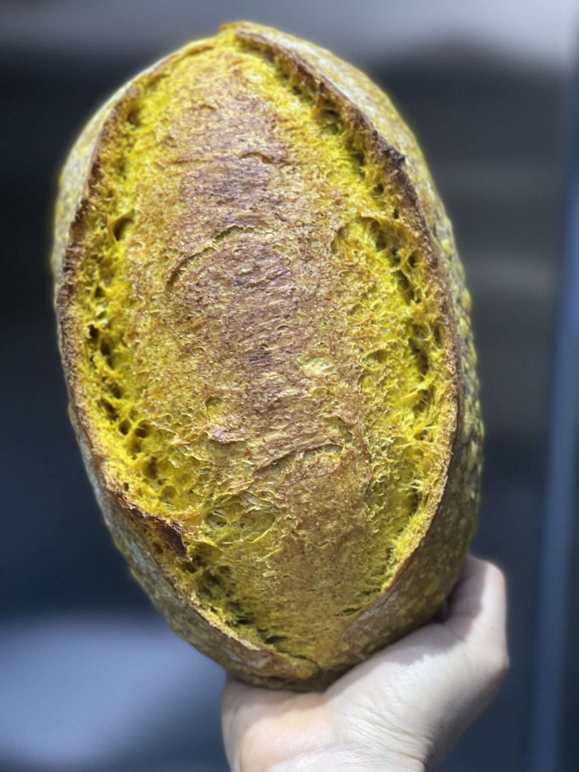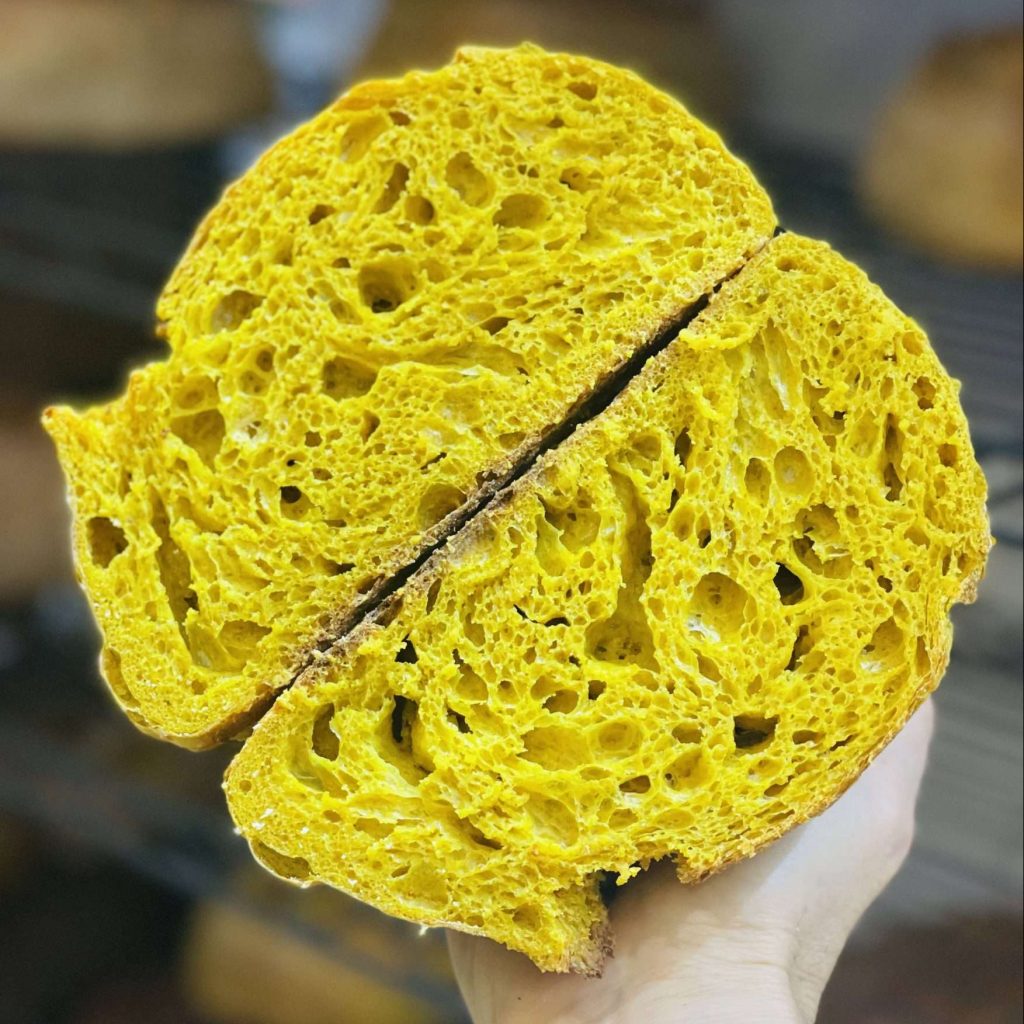Turmeric imparts a very subtle flavour but keeps it vibrant beautiful colour after baking. A golden yellow, flavourful sourdough loaf with the added health benefits of organic turmeric.